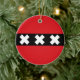 This design features the flag of the Dutch capital city of Amsterdam. The flag depicts three Saint Andrew's Crosses and is based on the escutcheon in the coat of arms of Amsterdam. Design journalist Roman Mars declared it, in 2015, to be the most "badass" city flag in the world. AFC Ajax, an Amsterdam-based football team that plays in the Dutch Eredivisie, uses the Amsterdam flag as their captain's armband. Amsterdam is colloquially referred to as the "Venice of the North", because of the large number of its canals which form a UNESCO World Heritage Site.