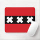 Mousepad with design with flag of Amsterdam, capital city of Netherlands, red and black flag with three white Saint Andrew’s crosses in the center