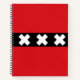 Spiral Notebook with design with flag of Amsterdam, capital city of Netherlands, red and black flag with three white Saint Andrew’s crosses in the center