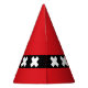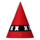 Party Hat with design with flag of Amsterdam, capital city of Netherlands, red and black flag with three white Saint Andrew’s crosses in the center