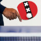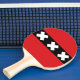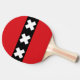 Ping pong paddle with design with flag of Amsterdam, capital city of Netherlands, red and black flag with three white Saint Andrew’s crosses in the center