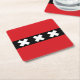 Paper coaster with design with flag of Amsterdam, capital city of Netherlands, red and black flag with three white Saint Andrew’s crosses in the center
