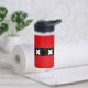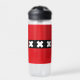 Water Bottle with design with flag of Amsterdam, capital city of Netherlands, red and black flag with three white Saint Andrew’s crosses in the center