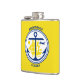 Vinyl wrapped flask with city of Anchorage, Alaska; yellow flag with white seal with an illustration of a blue ship and anchor