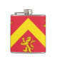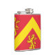 Vinyl wrapped flask with design with a flag of historic county of Anglesey, in Wales, Great Britain;; red flag with yellow chevron and three lions;
