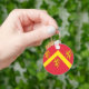 Keychain with design with a flag of historic county of Anglesey, in Wales, Great Britain;; red flag with yellow chevron and three lions;