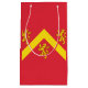Paper Bag with design with a flag of historic county of Anglesey, in Wales, Great Britain;; red flag with yellow chevron and three lions;