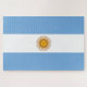This design features the national flag of Argentina (officially the Argentine Republic; in Spanish, "República Argentina"), which is a country located mostly in the southern half of South America. The country is bordered by Chile to the west, Bolivia and Paraguay to the north, Brazil to the northeast, Uruguay and the South Atlantic Ocean to the east, and the Drake Passage to the south. Argentina is subdidvided in twenty three provinces ("provincias") and one autonomous city ("ciudad autónoma"), Buenos Aires, which is the federal capital of the nation. The official motto of Argentina is "En unión y libertad", which means "In Unity and Freedom".
