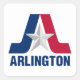 Sticker with the flag of Arlington, Texas. A white flag with a blue and red letter A and a silver star in the center
