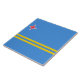 This design features the flag of Aruba, which is an island and a constituent country of the Kingdom of the Netherlands in the mid-south of the Caribbean Sea. Aruba is about 18 miles north of the Venezuelan peninsula of Paraguaná and 50 miles northwest of Curaçao. Together with Bonaire and Curaçao, Aruba forms a group referred to as the ABC islands. The capital of Aruba is Oranjestad, which is also the country's largest city. San Nicolaas is Aruba's second largest city.