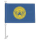 Car Flag with flag of city of Atlanta, Georgia; blue flag with yellow seal with an illustration of phoenix rising from flames