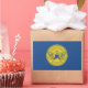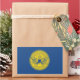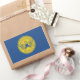 Sticker with flag of city of Atlanta, Georgia; blue flag with yellow seal with an illustration of phoenix rising from flames