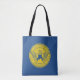 Tote bag with flag of city of Atlanta, Georgia; blue flag with yellow seal with an illustration of phoenix rising from flames