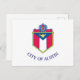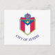Postcard with the flag of Austin, Texas. A white flag with city’s coat of arms in the center
