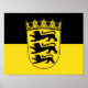 Poster with variant flag of Baden-Württemberg; design with two horizontal bands of black and yellow (golden), and emblem with shield with three black lions in the center