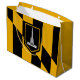 Large Gift Bag with flag of city of Baltimore, Maryland; black and yellow flag with an illustration of Battle Monument