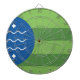 Dartboard with a design with the flag of Bellingham, Washington. A green and blue flag