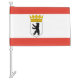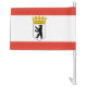 Car Flag with variant flag of Berlin, state flag with horizontal stripes of red and white, with an illustration of a black bear inside a shield with a crown