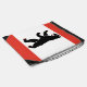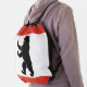 Backpack with flag of Berlin, state flag with horizontal stripes of red and white, with an illustration of a black bear in the center