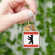Square Keychain with flag of Berlin, state flag with horizontal stripes of red and white, with an illustration of a black bear in the center