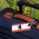 Luggage Tag with flag of Berlin, state flag with horizontal stripes of red and white, with an illustration of a black bear in the center