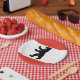 Paper Plate with flag of Berlin, state flag with horizontal stripes of red and white, with an illustration of a black bear in the center