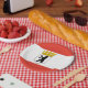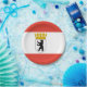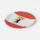 Paper plate with variant flag of Berlin, state flag with horizontal stripes of red and white, with an illustration of a black bear inside a shield with a crown