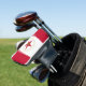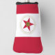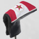 Golf putter cover with flag of city of Birmingham, Alabama; flag with three vertical bands of red and white with city seal with a star in the center