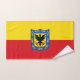 Hand Towel with design with flag of Bogota, capital city of Colombia, red and yellow flag with coat of arms with eagle in the center