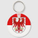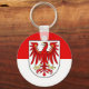 Button Keychain with flag of Brandenburg (Brandenburgs), design with two bands of red and white with state’s coat of arms with an illustration of a red eagle in the center