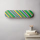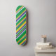 This skateboard design features a pattern of stripes (or lines) colored green, yellow, blue or white. These colors were inspired by those of the national flag of Brazil. This could be a great gift for somebody from Brazil, or even for somebody who just really likes the country of Brazil a lot.