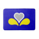 Bath mat with design with flag of Brussels-Capital Region of Belgium, blue flag with yellow, gray and white iris