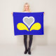 Blanket with design with flag of Brussels-Capital Region of Belgium, blue flag with yellow, gray and white iris