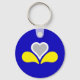 Keychain with design with flag of Brussels-Capital Region of Belgium, blue flag with yellow, gray and white iris