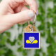 Square Keychain with design with flag of Brussels-Capital Region of Belgium, blue flag with yellow, gray and white iris