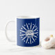 Mug with flag of city of Buffalo, New York; blue flag with white seal of the city and 13 lightning bolts