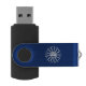 Flash USB with flag of city of Buffalo, New York; blue flag with white seal of the city and 13 lightning bolts