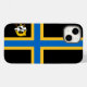iPhone 14 Case with design with a flag of historic county of Caithness, in Scotland, Great Britain; black flag with blue and yellow Nordic cross and an illustration of a ship with a raven on its sail in the upper hoist