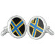 Cufflinks with design with a flag of historic county of Caithness, in Scotland, Great Britain; black flag with blue and yellow Nordic cross and an illustration of a ship with a raven on its sail in the upper hoist
