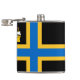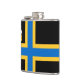 Vinyl wrapped flask with design with a flag of historic county of Caithness, in Scotland, Great Britain; black flag with blue and yellow Nordic cross and an illustration of a ship with a raven on its sail in the upper hoist