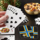 Poker playing cards with design with a flag of historic county of Caithness, in Scotland, Great Britain; black flag with blue and yellow Nordic cross and an illustration of a ship with a raven on its sail in the upper hoist