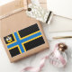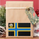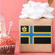 Sticker with design with a flag of historic county of Caithness, in Scotland, Great Britain; black flag with blue and yellow Nordic cross and an illustration of a ship with a raven on its sail in the upper hoist