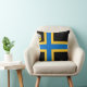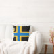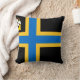 Throw pillow with design with a flag of historic county of Caithness, in Scotland, Great Britain; black flag with blue and yellow Nordic cross and an illustration of a ship with a raven on its sail in the upper hoist