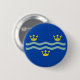 Round Button with design with a flag of historic county of Cambridgeshire, in England, Great Britain; blue flag with three golden crowns and two waves