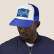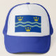 Hat with design with a flag of historic county of Cambridgeshire, in England, Great Britain; blue flag with three golden crowns and two waves