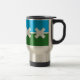 Travel Mug with a flag of Cedar Park, Texas. A green and blue flag
