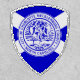 Charlotte’s flag has the city seal centered on a white saltire on a light blue field. The seal depicts a tree in the center. To the left, a hornet’s nest hangs on the tree. On the right, a liberty cap bearing the word LIBERTY hangs on one of the tree’s branches. Rays radiate behind the tree. Below the tree, two hands clasp, with 1775 below. Enclosing this design, CITY OF CHARLOTTE MECKLENBURG COUNTY curves clockwise over the top of the seal and NORTH CAROLINA curves counterclockwise below. Between these inscriptions are two stars. The seal appears in blue outline on a white field surrounded by blue inner and outer lines. A white fimbriation separates the seal from the field.