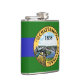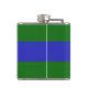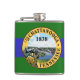 Flask with the flag of Chattanooga, Tennessee. A green and blue flag with the seal of the city in the center