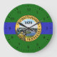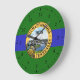 Clock with the flag of Chattanooga, Tennessee. A green and blue flag with the seal of the city in the center
