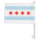 Car Flag with flag of city of Chicago (largest city in Illinois), white and light blue striped flag with four red stars